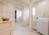 明るく広々した洗面脱衣室 洗濯室と洗面脱衣室を分けた間取りとしたことで、洗面脱衣室は広々とした空間とすることができました。 お子様をお風呂に入れてあげる時にも広い空間で脱ぎ着をさせてあげられます。 また、これからお子様が成長してくと朝の洗濯の時間と身づくろいの時間が重なるようになりますが、分けていることでストレスなく使える間取りです。 |
