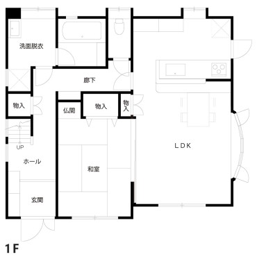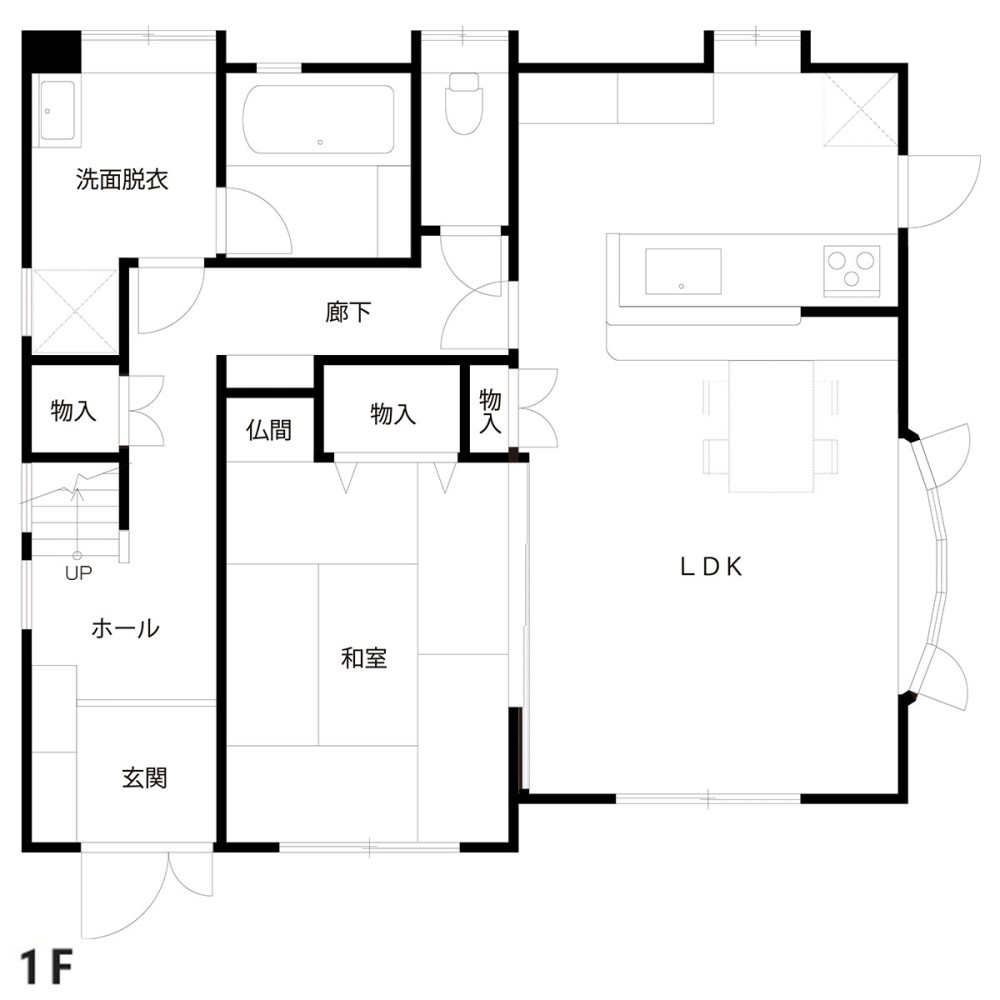 ほとんど使っていない1階の和室をリビングにつなげて広いLDKにし、収納の充実した間取りにしてほしいというご要望でした。