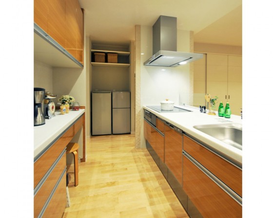 開放的な空間 オープンな対面キッチンになり、開放的な空間で料理することができます。 木目調のキッチンが空間と調和しています。 |
