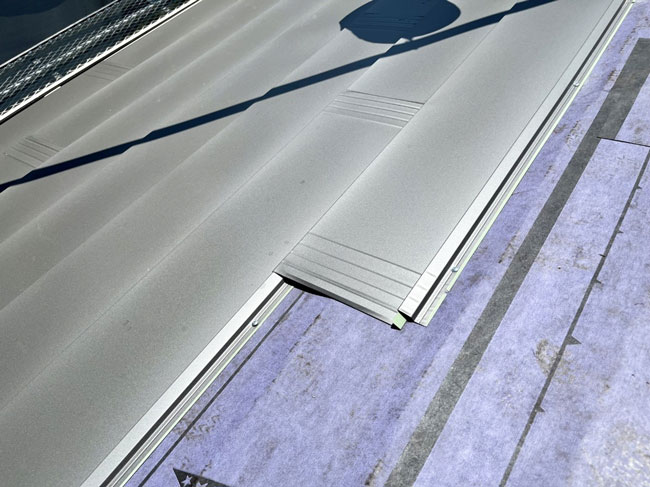 屋根板金の問題③ 破風板:屋根板金の取り合い(接触する部分)のずれなどで隙間から雨漏りが発生する。
