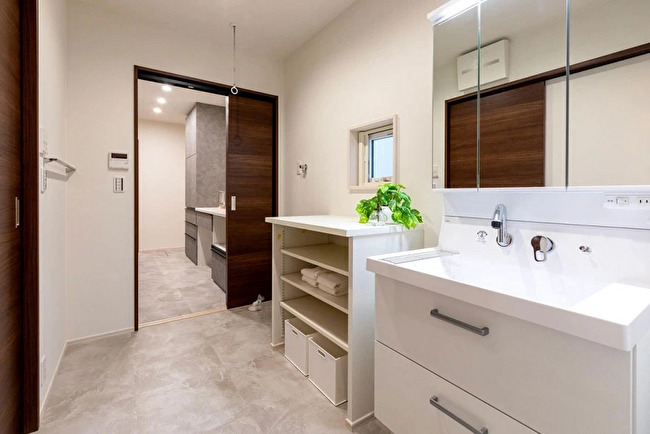 介護を見据え、寝室・LDKどちらからもアクセスしやすい2方向の入口を設け、介助しやすい広さのトイレ&洗面としました。
