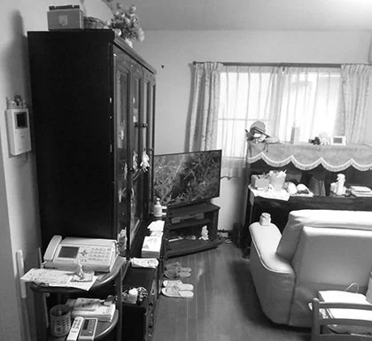 築45年の木造住宅で、手話で会話をされているお施主様のリノベーション事例です。冬場の寒さや収納の少なさ、外観の老朽化に悩まされていました。別々になっている居間と台所では、手話でのコミュニケーションが取りにくいという課題も。