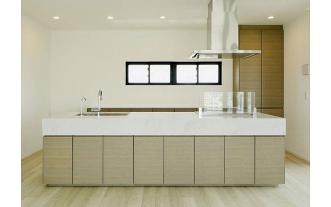 シンク、コンロ、調理スペースが横一列に並んだ、スタンダードなレイアウトです。日本の住宅で古くから採用されてきました。