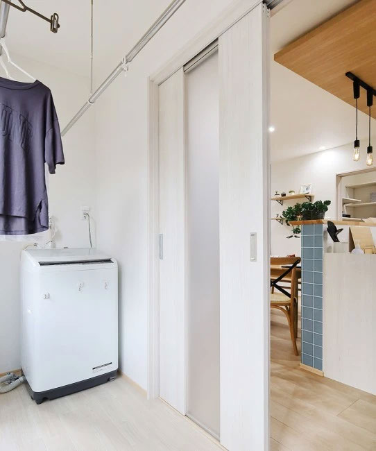 室内干し用の専用コーナーを設けることで、見た目をスッキリさせながら使い勝手の良い干しスペースを確保できます。