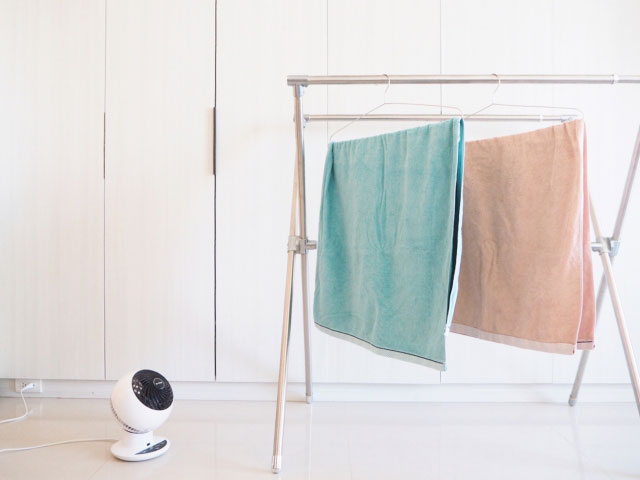 室内干しで重要な要素に「速乾」があります。乾燥が遅れると生乾き臭の発生につながるため、扇風機やサーキュレーターを上手に活用しましょう。