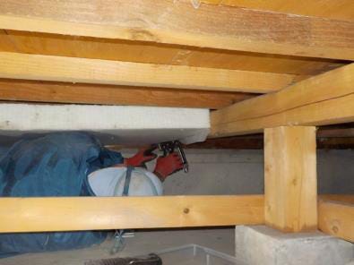 →断熱材が脱落したり、床と密着せず隙間があくと効果が極端に落ちますので、脱落しない施工方法が求められます。