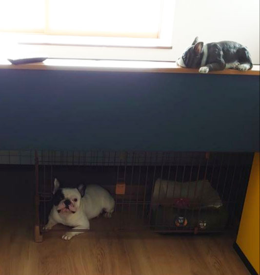 ⑤ワンちゃんが自分だけの空間でゆっくり休めるようにロフトの下にワンちゃんのスペースを造りました。