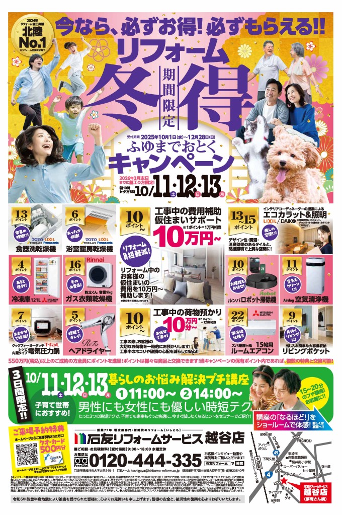 場所 | 越谷市大里549-1 石友リフォームサービス越谷店 |