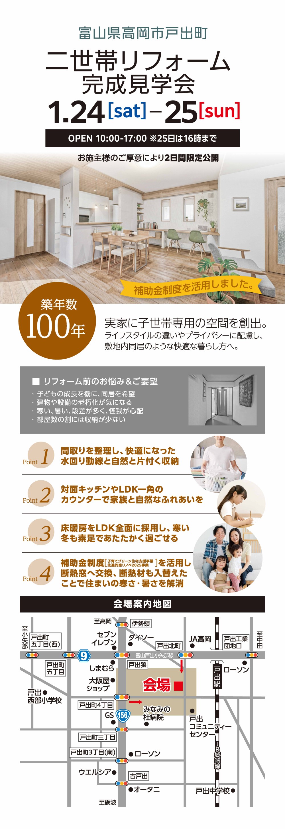 - 1/24-25二世帯リフォーム完成見学会 富山県高岡市 築100年