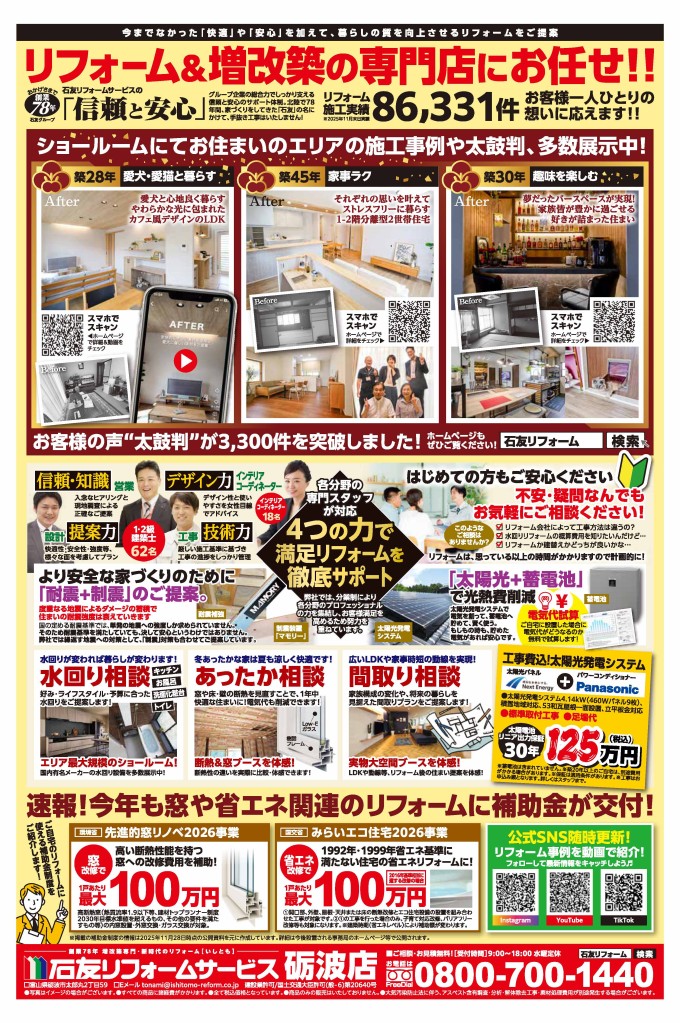 2026年も石友リフォームサービス砺波店をよろしくお願いいたします。