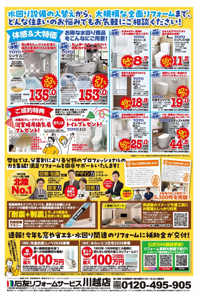 【川越店】「TOTO川越ショールームリフォーム大相談会」開催!