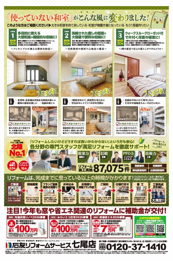 【七尾店】リフォームで和室大変身!