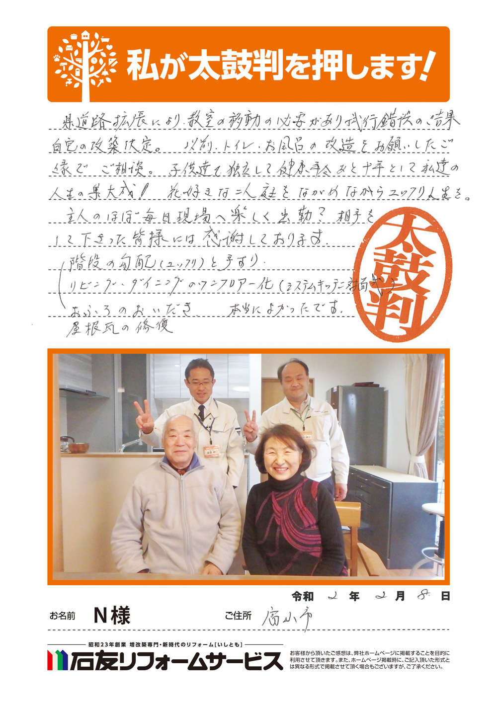 - LDK・キッチンのリフォームに関する富山県富山市N様の声