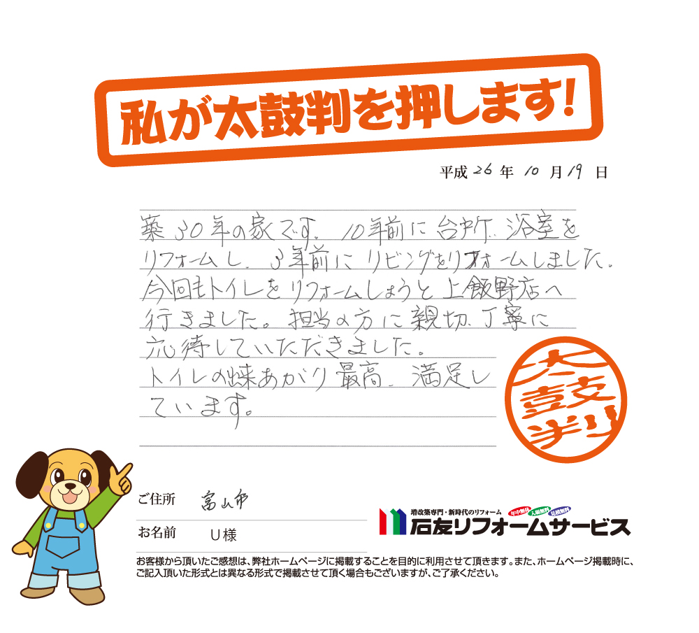 富山県富山市U様から太鼓判を頂きました!