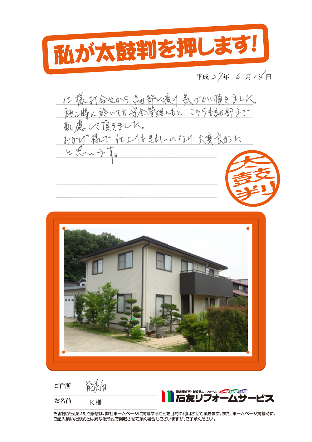 おかげ様で仕上りもきれいになり大変良かったと思います。