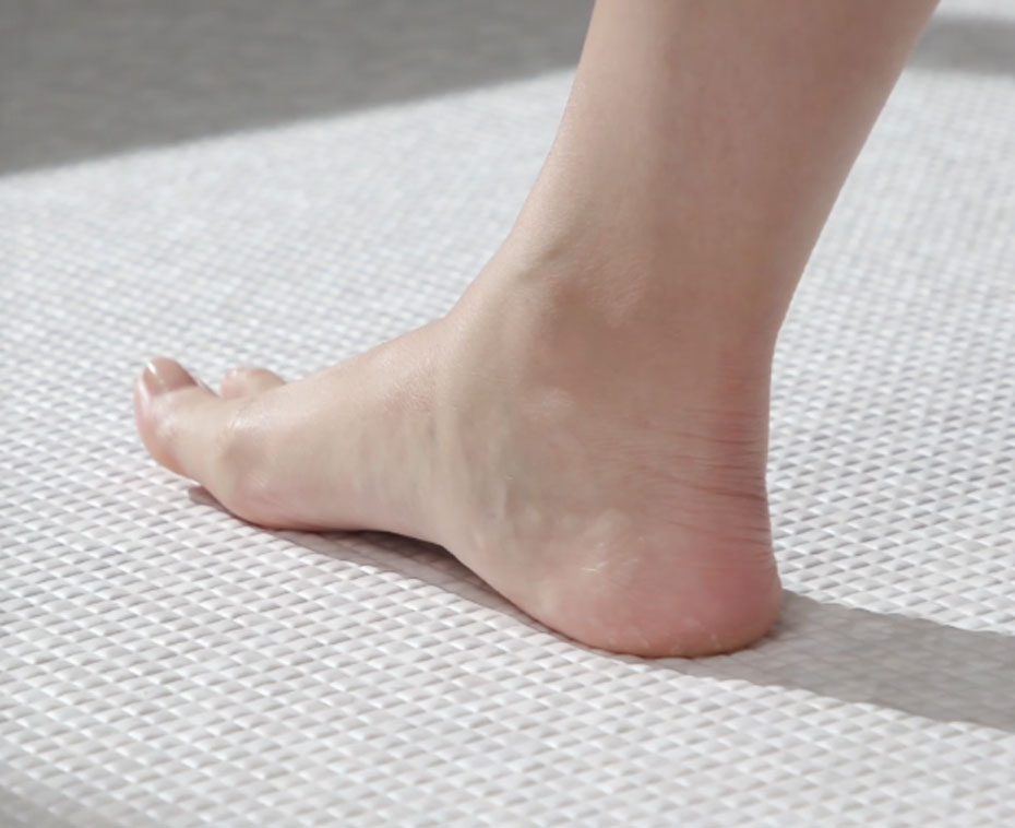 冬場もヒヤッとせずにほっとする、翌朝にはカラリと乾いているTOTOこだわりの床です。 -
