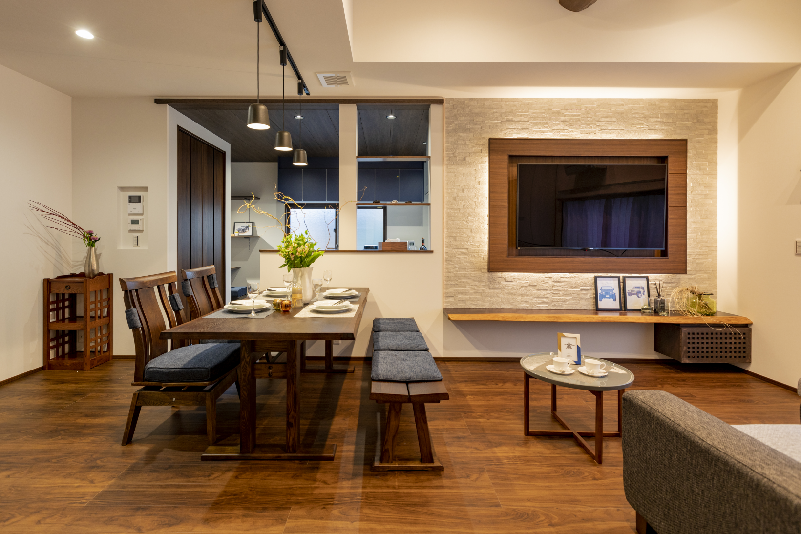 契約後、専属のインテリアコーディネーターが、照明プランや内装プランをご提案いたします。丁寧なヒアリングと何気ない会話から、「想い」と「理想」をくみ取り、予算に合わせて建具や壁紙、フローリングの色、素材の選定からテーブルや照明など空間をトータルコーディネート。機能性とデザイン性にこだわった唯一無二の空間づくりを実現します。