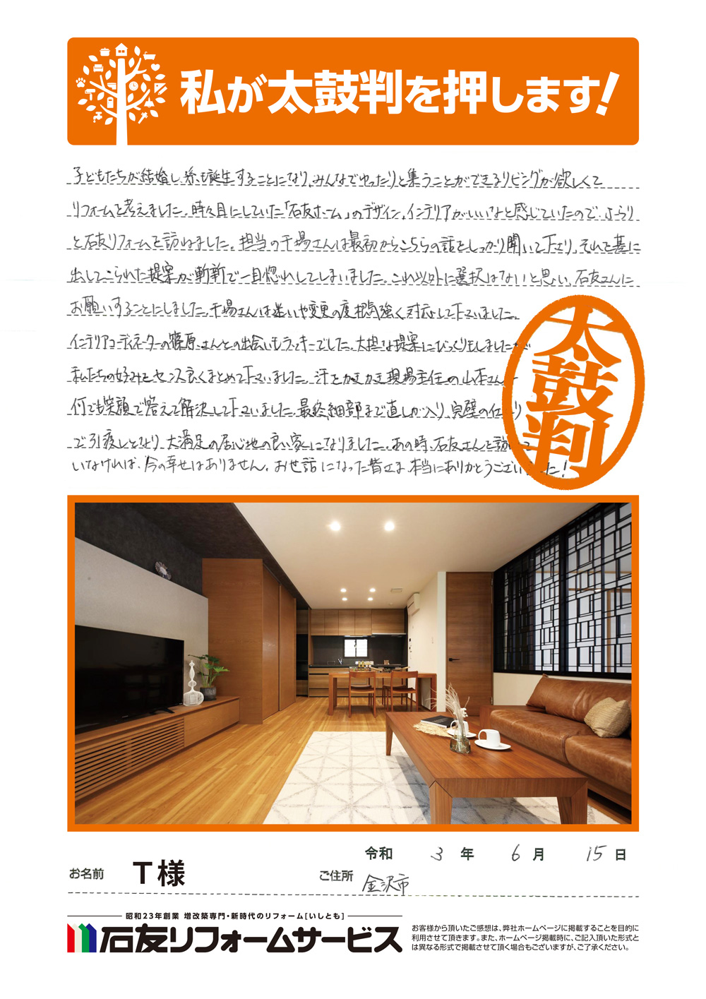 石友リフォームサービス石川県庁前店による石川県金沢市T様邸のリフォーム施工事例です。