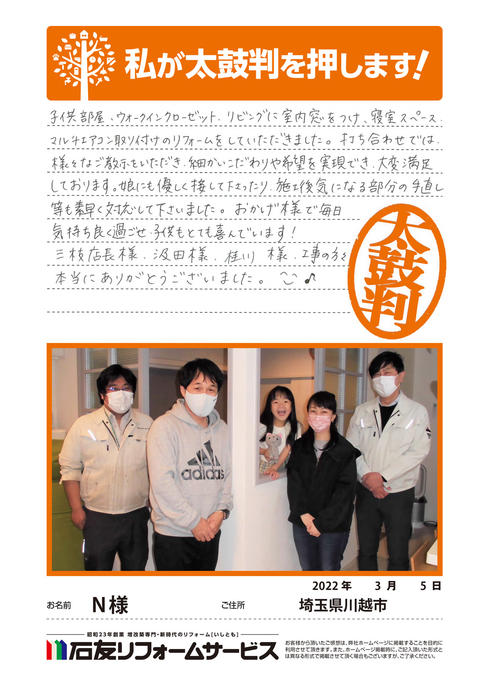 石友リフォームサービス川越店による埼玉県川越市N様邸の収納リフォーム施工事例です。