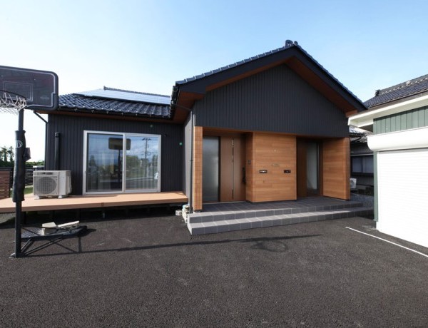 合板仕上げと濃い木目調の玄関がピッタリ合っています。